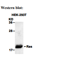 HEK-293T whole-cell lysate was used for Western blot with anti Ras polyclonal antibody (cat # 21021). |