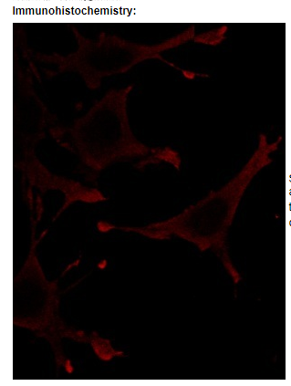 Staining of MEF cells (treated with PDGF) with anti Ga13 GTP monoclonal antibody showing the localization of Gα13 GTP in the leading edge of migrating cells.