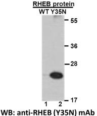 | Species Reactivity: Recognizes Y35N mutant, but not wild-type RHEB of vertebrates. |