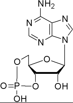 環(huán)磷腺苷酸(cAMP)和環(huán)磷鳥苷酸(cGMP)是在通過對特定蛋白激酶作用來調(diào)節(jié)細(xì)胞內(nèi)能量代謝的過程中非常重要的第二信使分子。兩者都富含于中樞神經(jīng)系統(tǒng)當(dāng)中,AMP參與較高的皮質(zhì)功能,而cGMP參與光轉(zhuǎn)導(dǎo)。cAMP是三磷酸腺苷(ATP)的衍生物 ,在多種不同生物體的細(xì)胞內(nèi)介導(dǎo)cAMP依賴的信號轉(zhuǎn)導(dǎo)通路。cAMP參與細(xì)胞代謝、分化、增殖的跨 膜調(diào)控機(jī)制在惡性生長中具有良好的 細(xì)胞抑制和調(diào)節(jié)體內(nèi)平衡的作用。