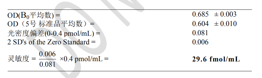 靈敏度:22.9fmol/ml 檢測范圍:0.08pmol/ml-250pmol/ml